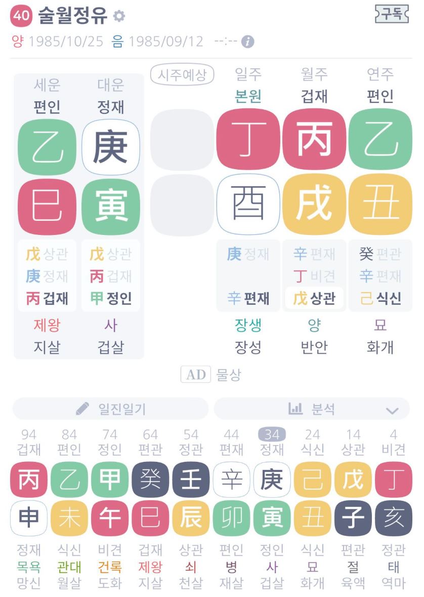 - 무관인데 상관이 많고 편재를 추구하니 윗사람·법을 가볍게 여길 수 있다는 분석