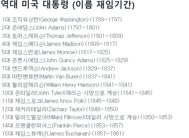 미국 초대 대통령부터 16대까지 (건국~남북전쟁)