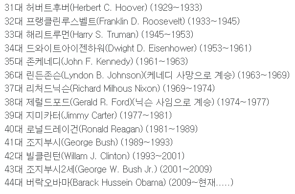 33대부터 현재까지 (현대 미국 대통령)