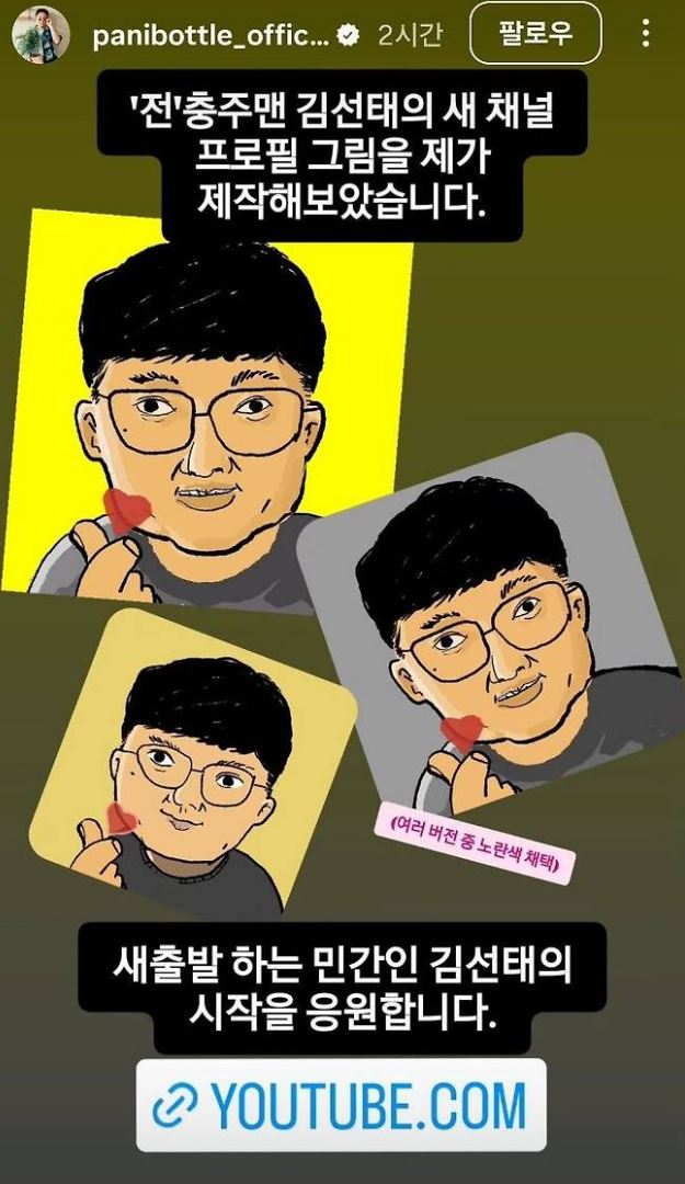 - 여행 유튜버 빠니보틀이 직접 캐리커처 제작해 공개 응원.